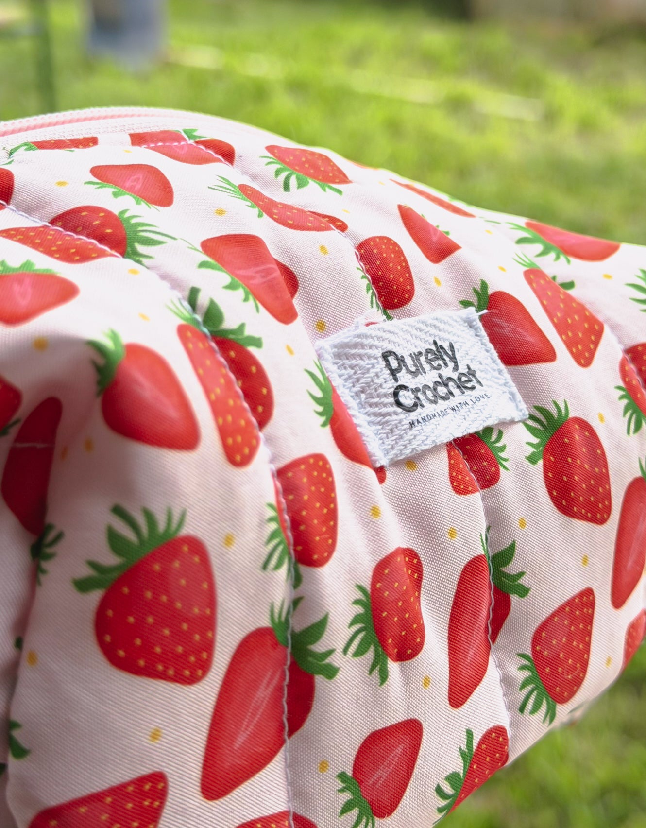 Uma necessaire fofa e muito espaçosa com tecido de morangos, perfeita para organizar os seus produtos de skin care ou maquiagem. Com forro interior vermelho e fecho de correr rosa, é tão bonita por dentro como por fora!